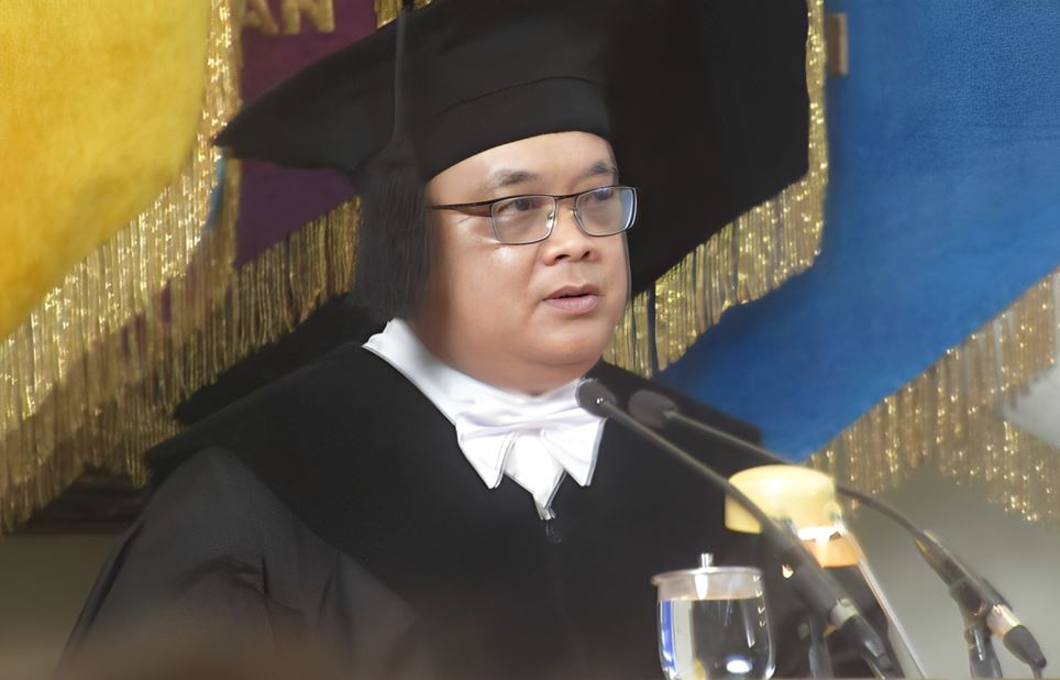 ADA yang menarik saat berlangsung pidato pengukuhan guru besar Prof. Dr. Nur Rachmat Yuliantoro pada Kamis (24/7/2025). Terlihat, guru besar dalam bidang Pembangunan Internasional di Asia Timur, Fakultas Ilmu Sosial dan Ilmu Politik ini memanfaatkan simbol-simbol untuk mendukung apa yang disampaikannya dalam pidato.
